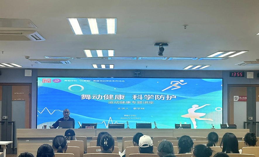 为进一步增强学生科学训练意识,提升运动损伤预防与自我防护能力,帮助同学们以更加专业、理性的态度认识和应对训练中的疼痛与损伤问题,4月8日下午,舞蹈学院党总支,教工第一党支部,学工办组织师生在演艺大楼325报告厅顺利举办“舞动健康,科学防护”主题讲座。江苏省体育科学研究所所长秦学林应邀担任主讲嘉宾,围绕舞蹈...